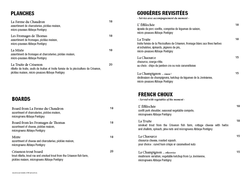 Spécialité locale mise à l’honneur : la gougère, pâte à choux à l’emmental ou au comté d’origine icaunaise. Réinventée avec trois garnitures différentes, bio, locales et de saison, pour sublimer le terroir et la cuisine française.