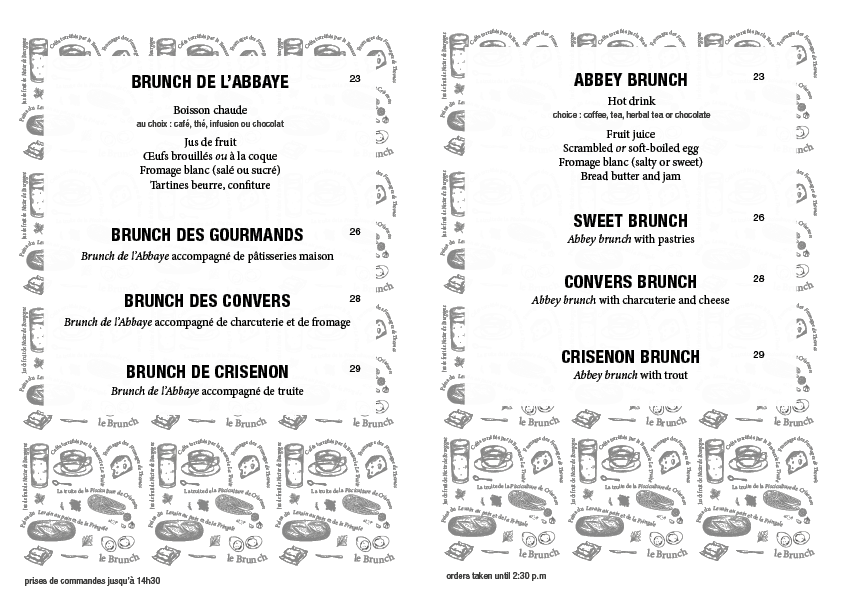 Le brunch de l’abbaye est servi tous les jours de 11h à 14h30.